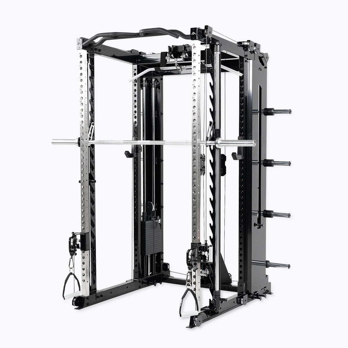 The Wall-Mounted Athena™ Side-Mount Functional Trainer is a low-profile cable attachment that is integrated into a 5000 series wall-mount fixed rack. Achieve a full-body workout using the multifunctional capabilities of a functional trainer machine and power rack without requiring the space for separate stand-alone units