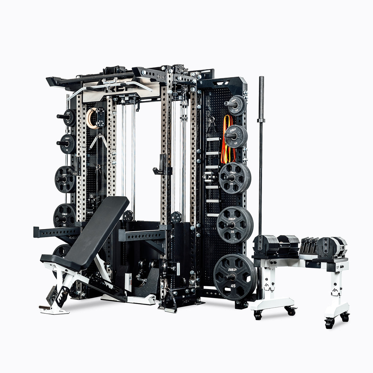 Introducing the Hyperion™ series 1, a pre-configured, full gym setup in just a few clicks. The unique Hyperion™ collection is the ultimate, easy solution to designing a versatile, compact gym -- utilizing REP’s modularity, functionality, and space-saving features in different combinations of cohesive, rack-centric builds. The Hyperion™ collection was inspired by our community and perfected by the REP team.